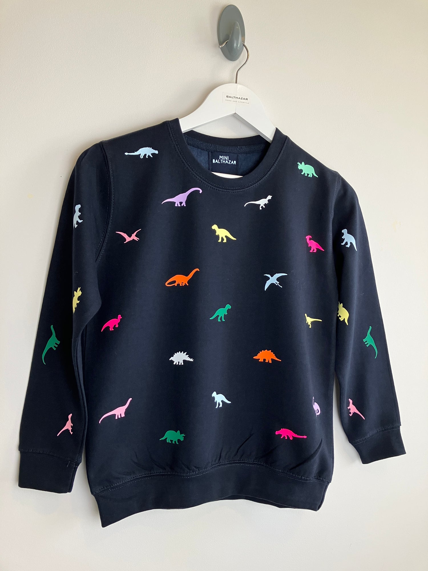 Children's Multicoloured miniature dinosaur sweatshirt- novelty print- hand made