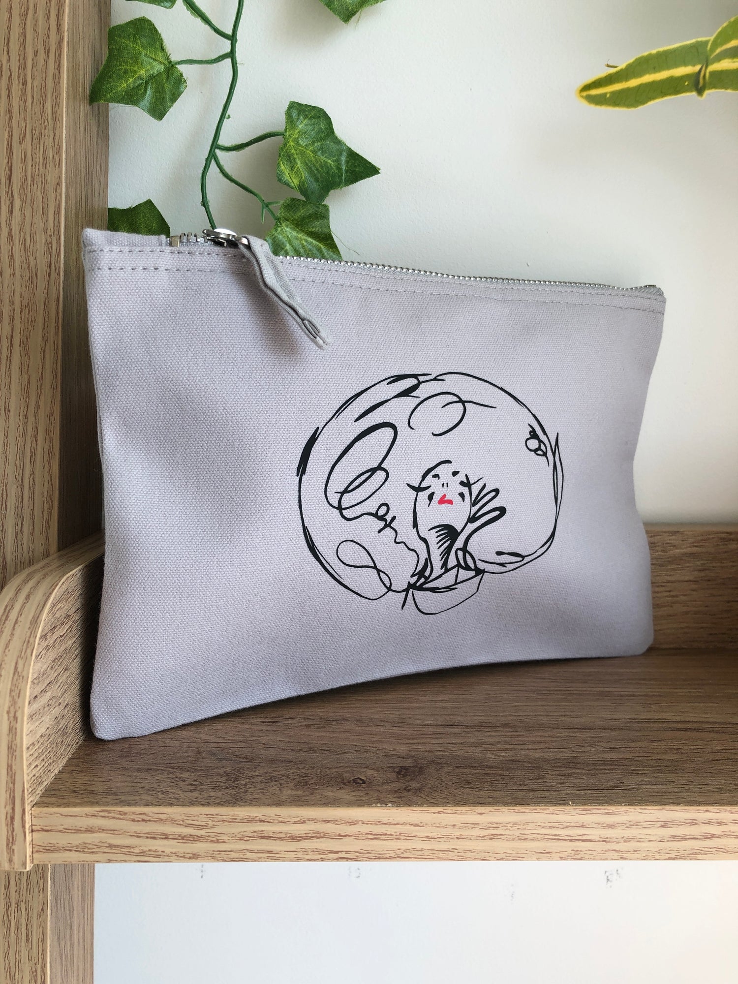 Each pouch is made from 100% cotton and Medium measures 8.5 Inches in width, 6 Inches in height.