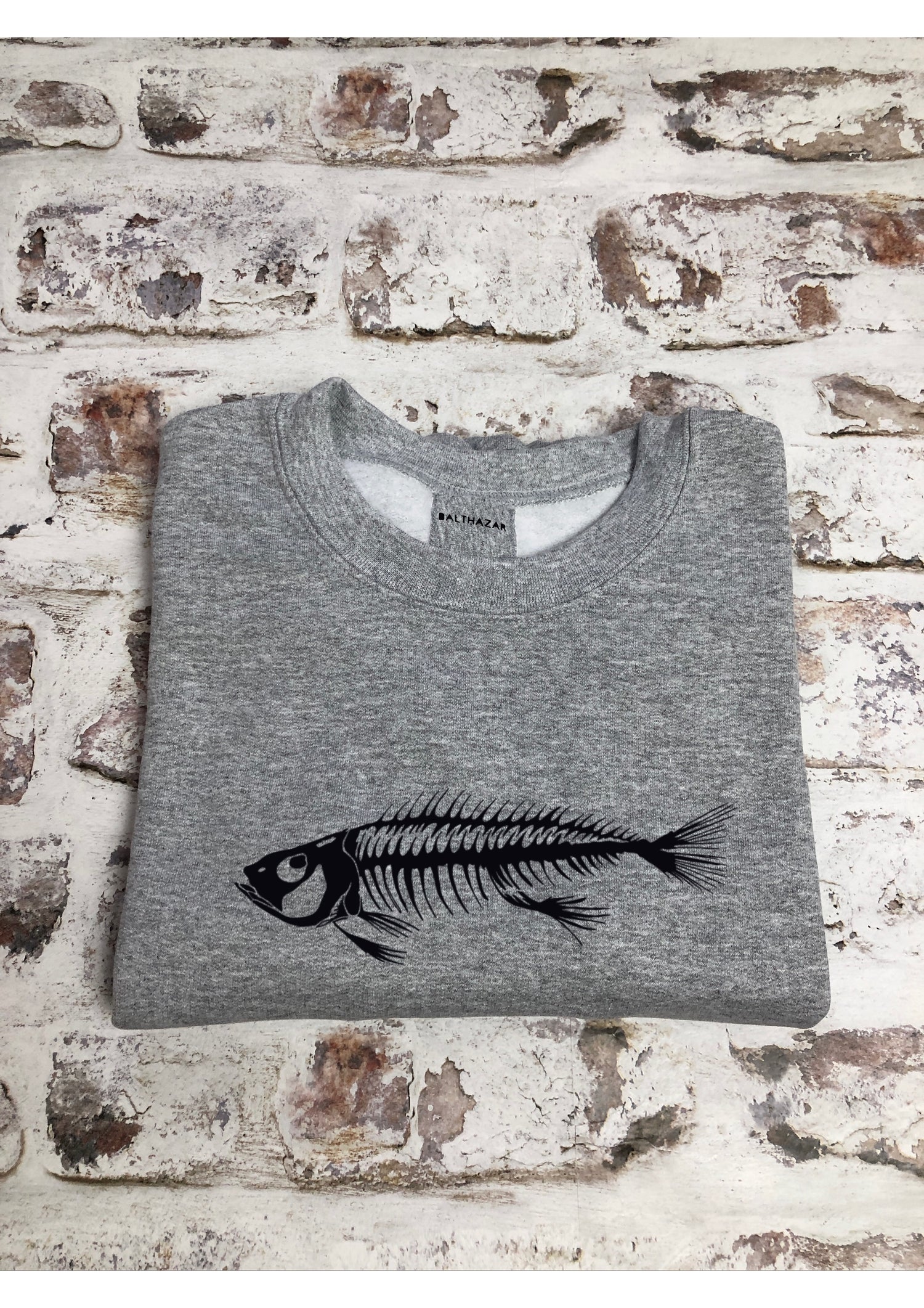 Striking sweatshirt featuring a hand drawn fish skeleton that can be customised from a huge variety of colours;