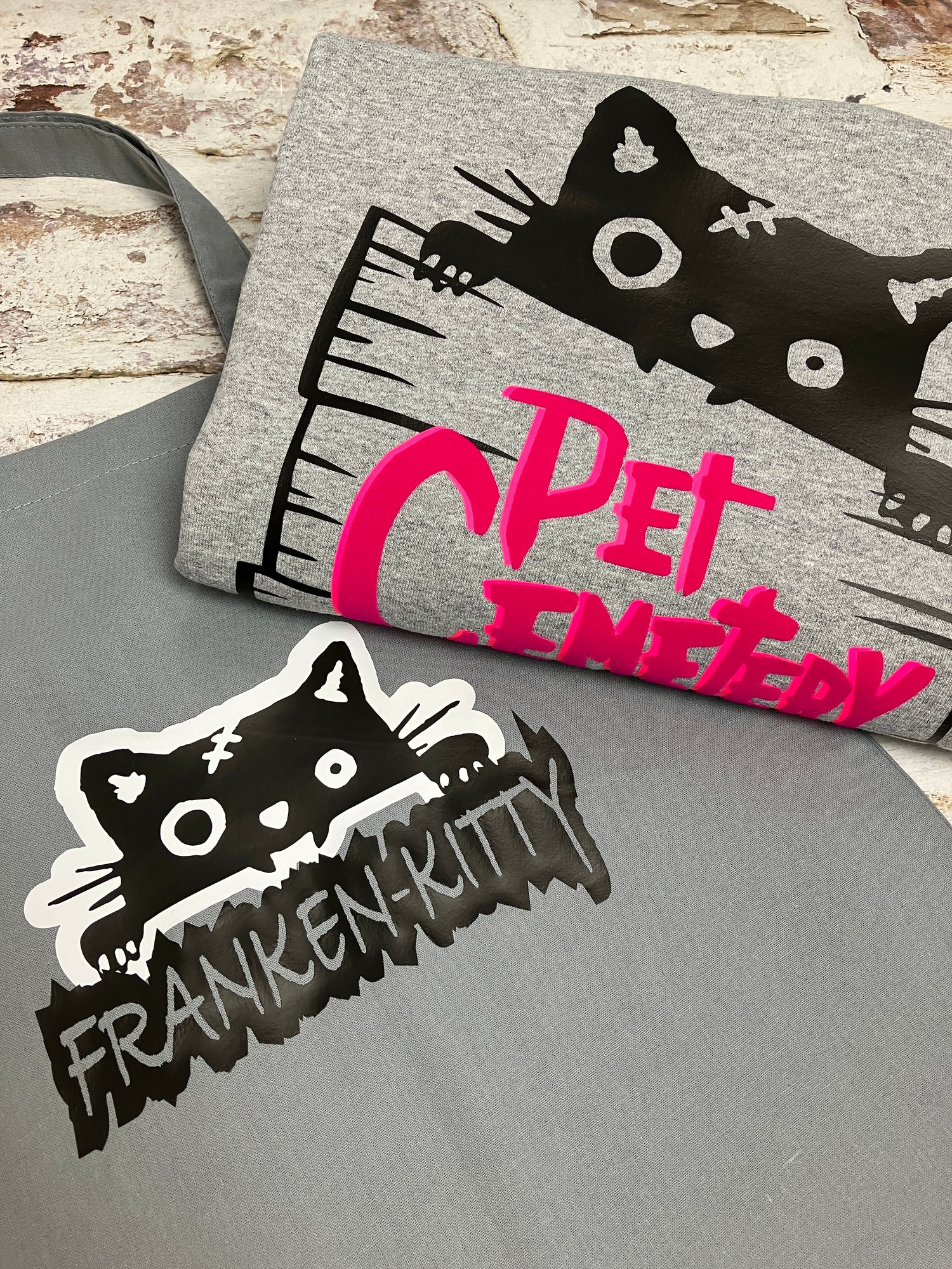 Franken-kitty and the Pet cemetery halloween sweatshirt