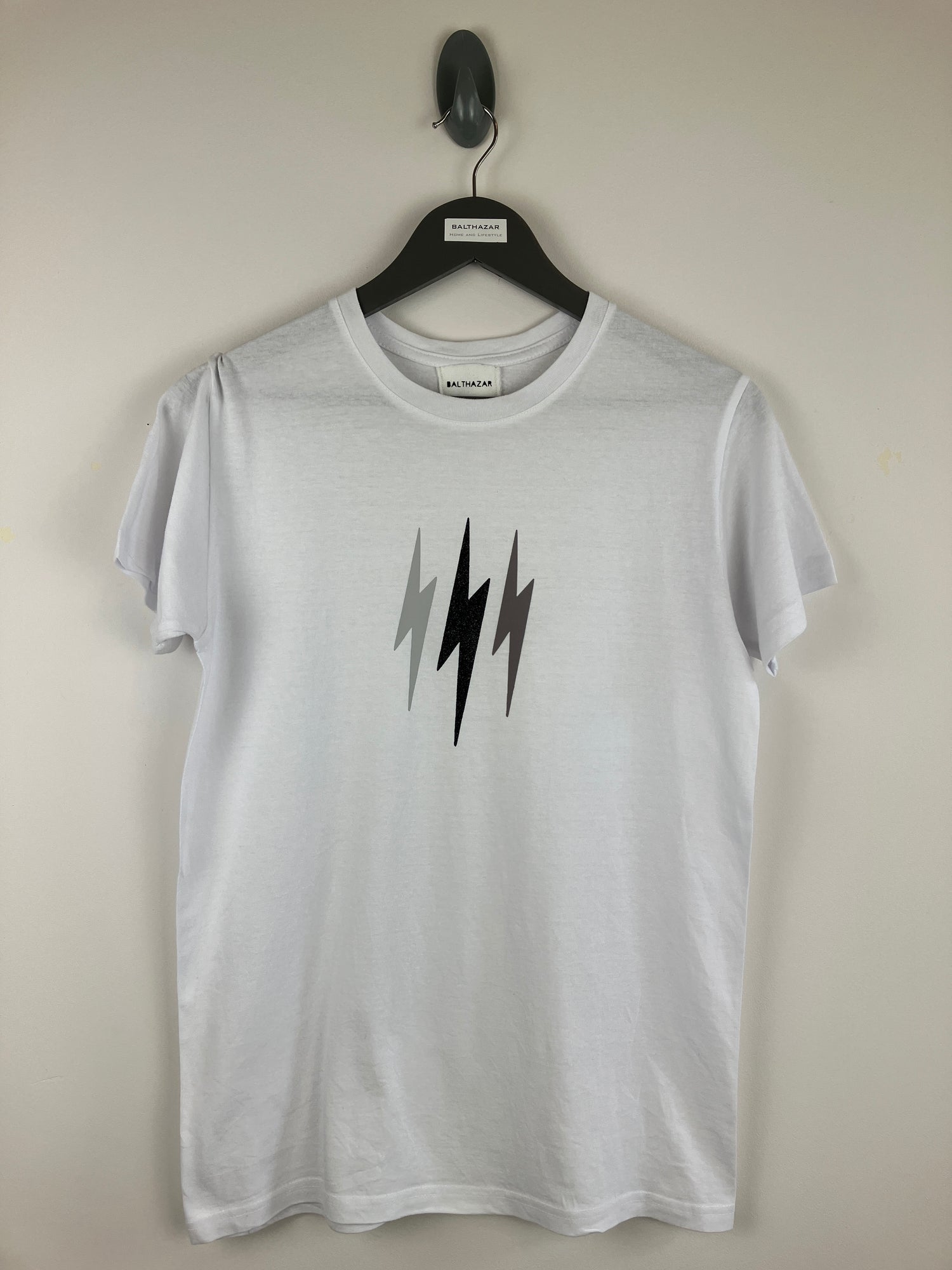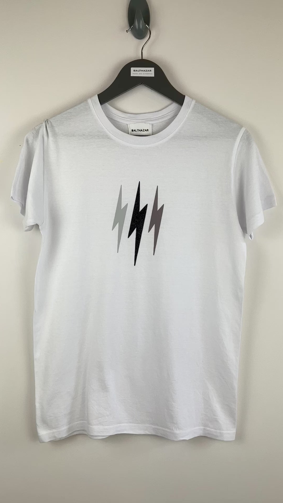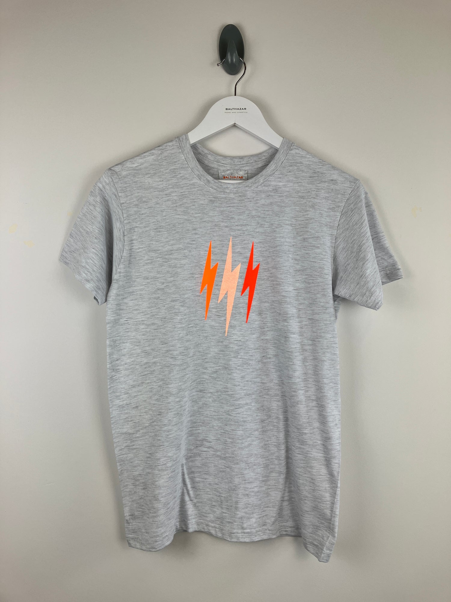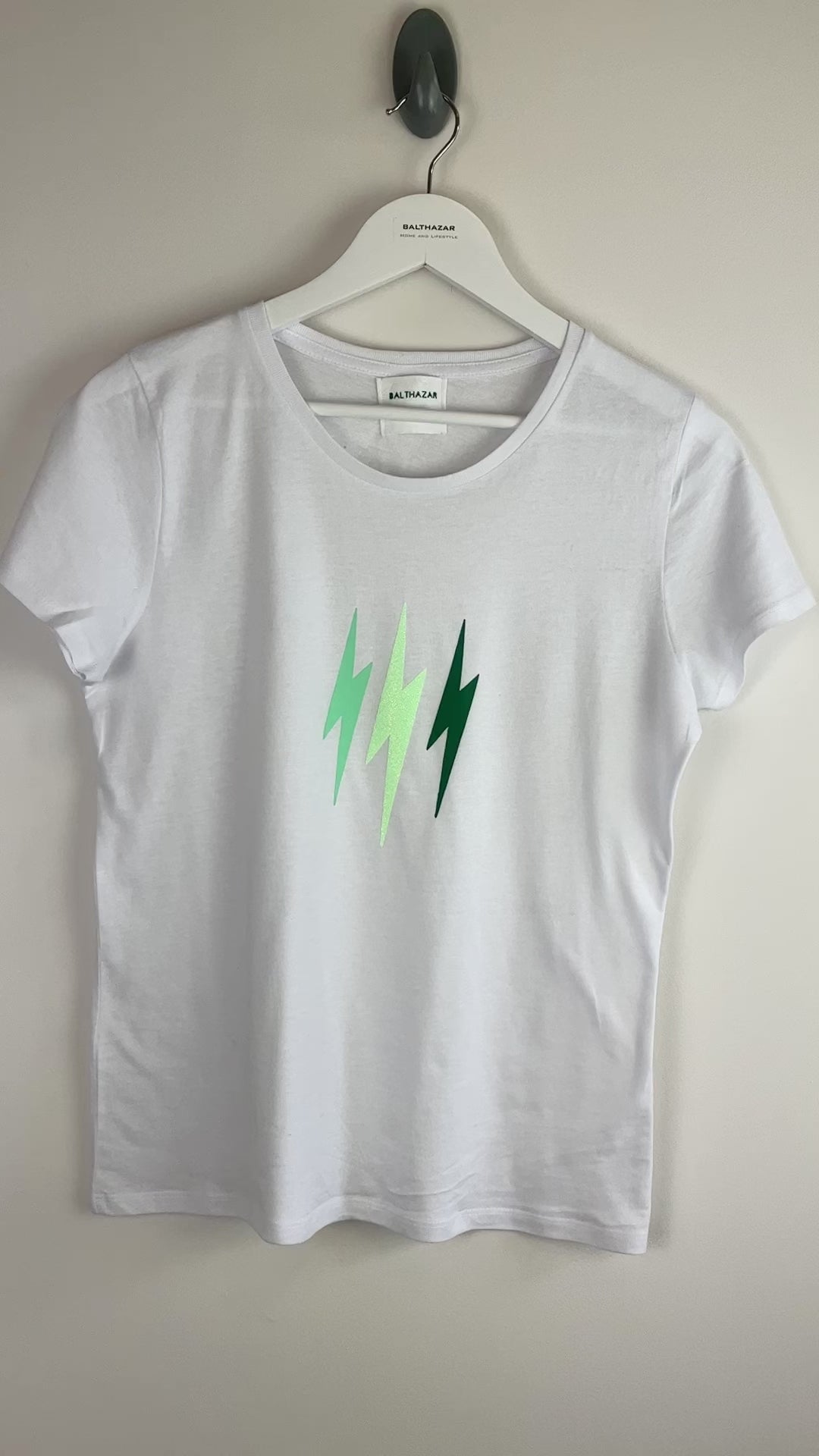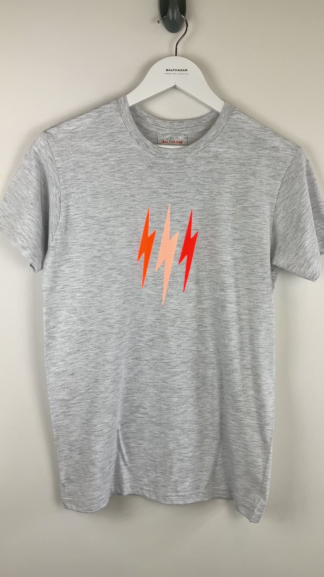 The glitter mix trio t-shirt features 3 lighting bolts in a mix of colours.