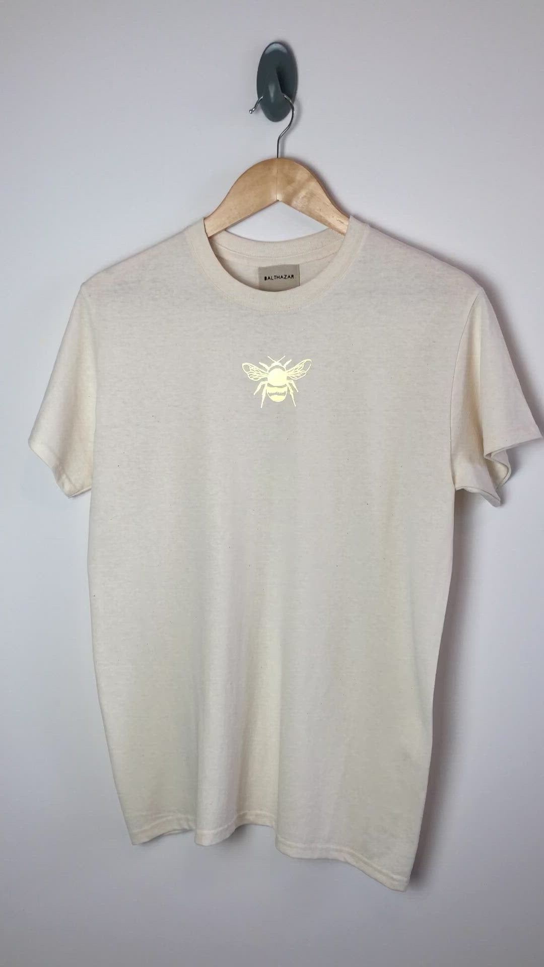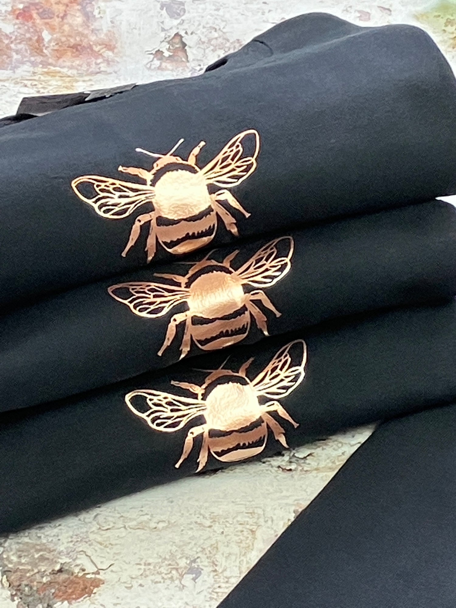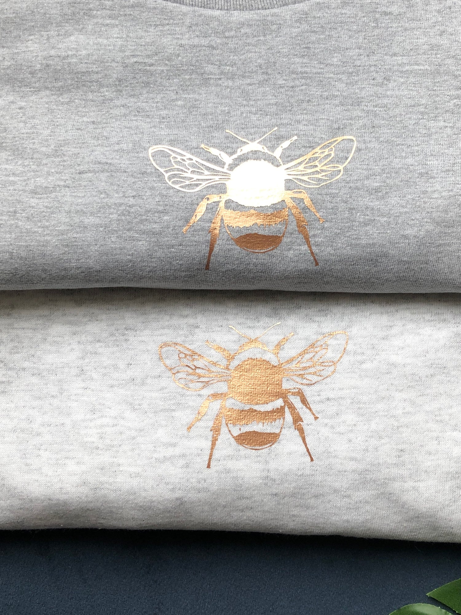The Metallic bee t-shirt features a hand drawn bee cut from your choice of metallic or soft Matt metallic toned vinyl