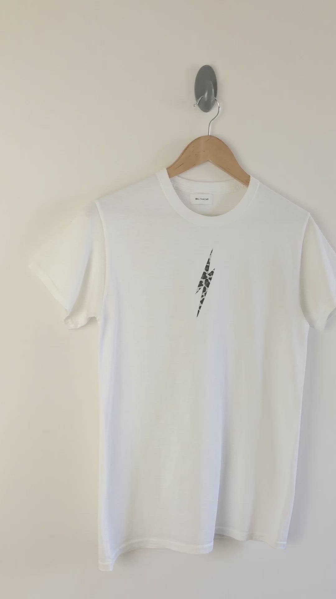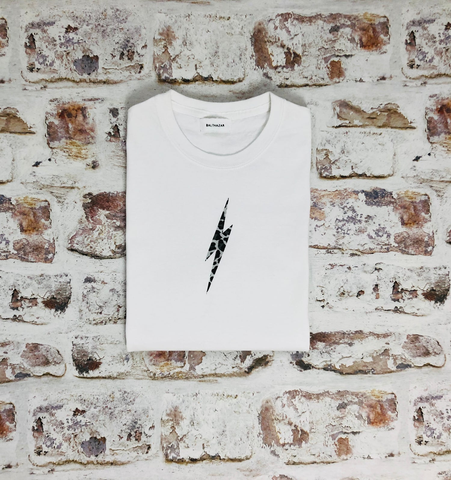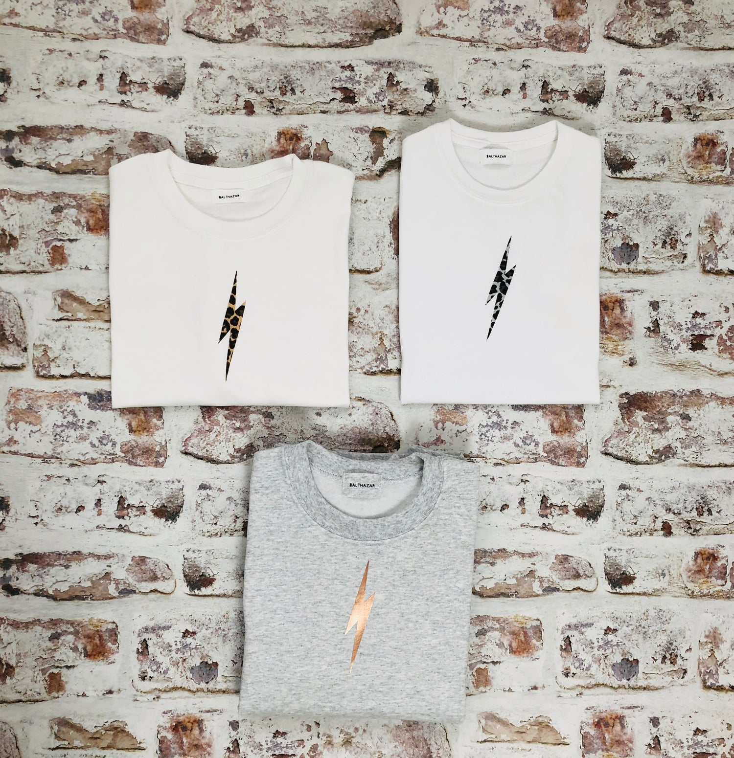 The Animal print lightning bolt t-shirt features a lightning bolt cut from either Cheetah ( Gold and black), Leopard ( Black and Silver) or Pink leopard vinyl and measures just over 5.6 inches in height.