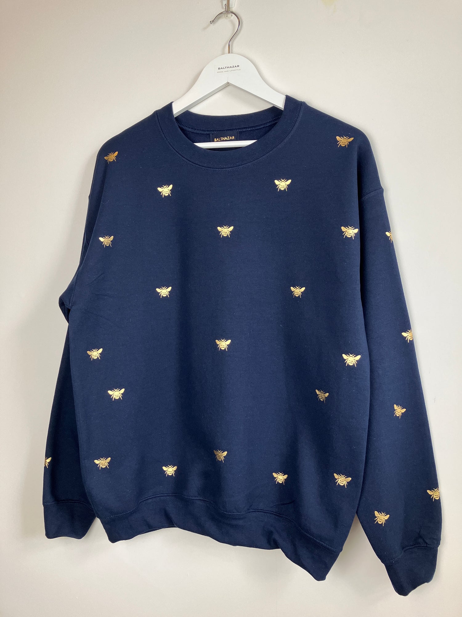 Our little bee has been made miniature and customisable! Each little bee measures just over 1 Inch in width an cover the whole front and arms of our cotton sweatshirt, with a single bee on the back of the collar