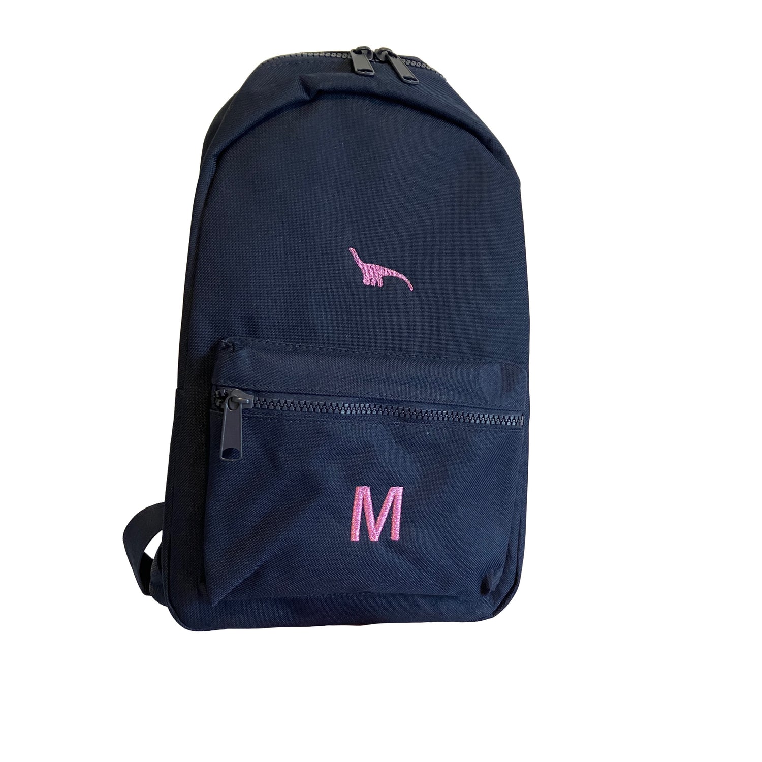 Personalise the mini backpack with an initial and dinosaur of your choice and in the colours of your choice.