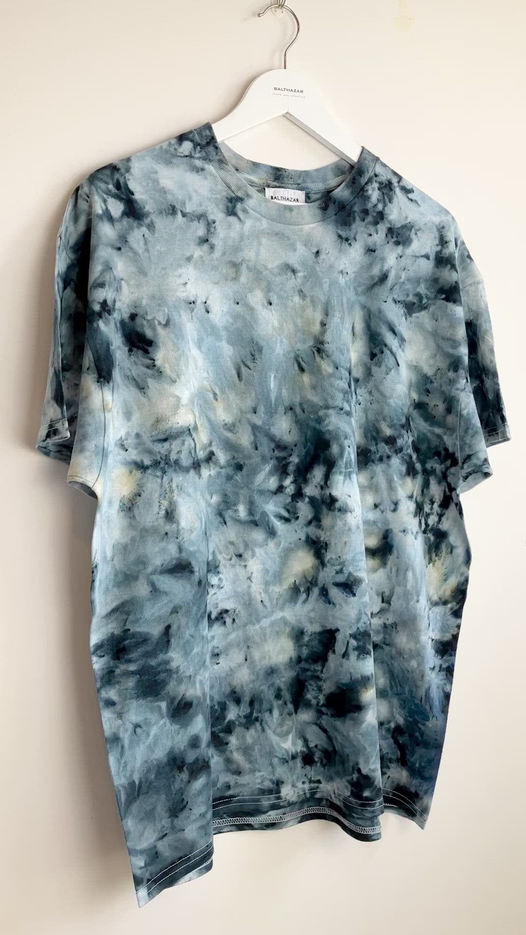Hand dyed cotton t-shirts feature a unique blend of smokey tones: You can see varying shades of grey and black with hints of blue or purple ( these are colours within the dye but the dominant colours are smoky grey and black)