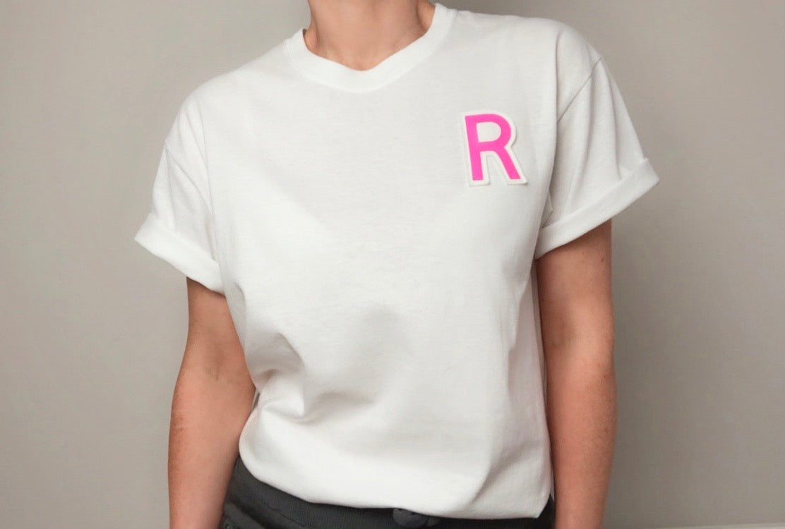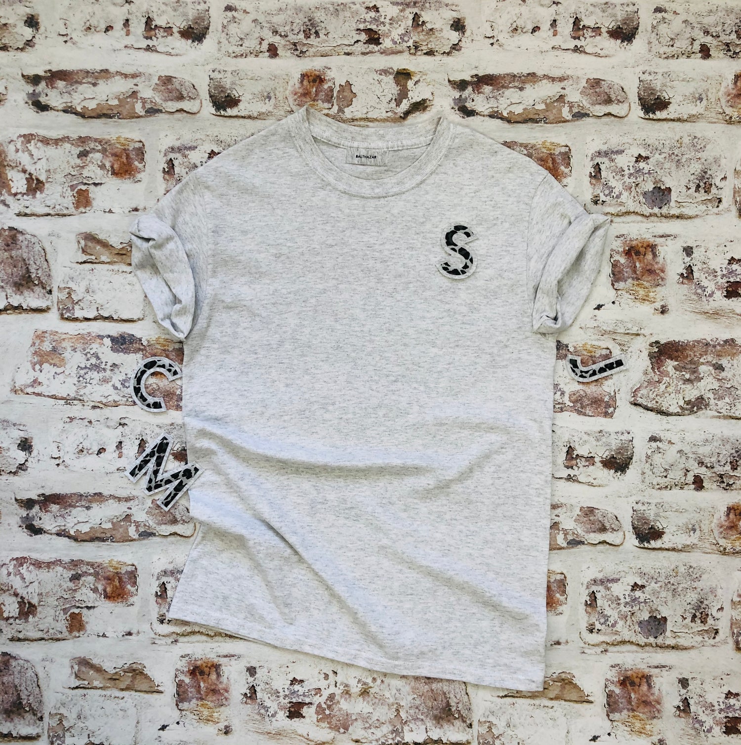 Cotton t-shirt with an Initial of your choice, the letter measures just over 2.5 inches in height.